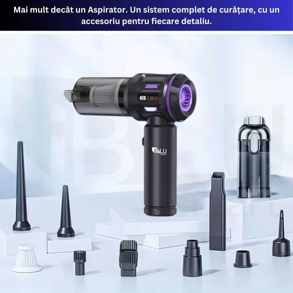 Aspirator de Mână iBLU Smart – Wireless 20.000Pa, Suflantă Aer, 8 Accesorii, USB-C